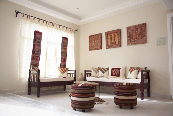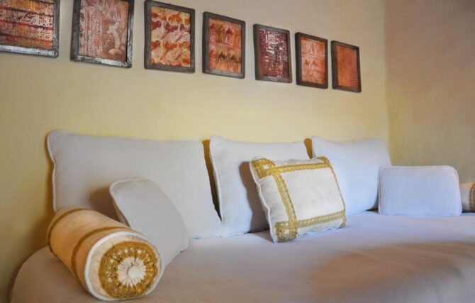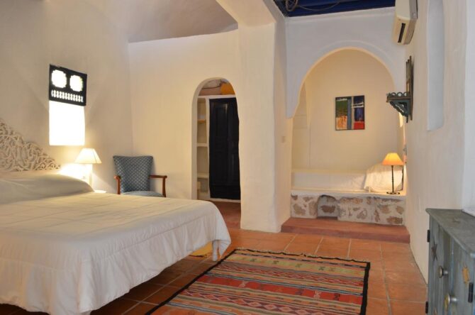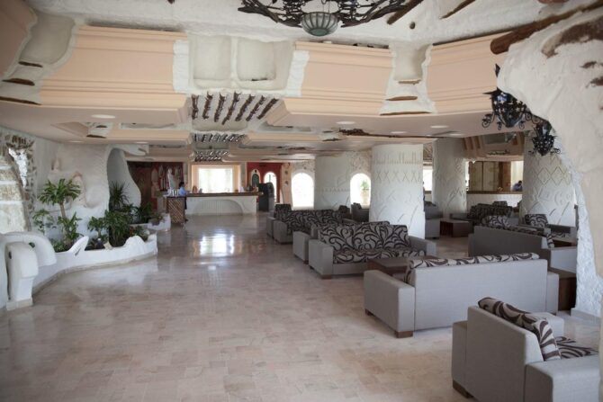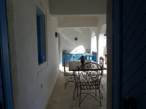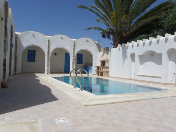 В помещениях много декоративных элементов – картин, кувшинов, лепнины, национальных инсталляций. Всего тут 2 бассейна, вокруг которых расставлены мягкие удобные шезлонги. Территория небольшая, но очень уютная. Работники очень услужливые, стараются сделать все, чтобы постояльцы остались довольны. В палатах есть скоростной Wi-Fi, кондиционер. Здесь можно проживать с животными, это не возбраняется. В местах общественного питания здесь подают блюда национальной традиционной кухни Туниса и Средиземноморья. Также гостям предоставляются услуги массажа и турецкой бани.