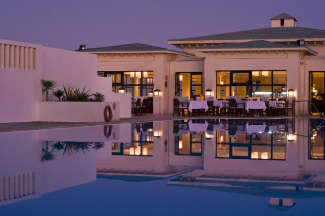 Пансион растянулся на первой береговой линии. На берегу приятный мелкий песочек, вход в воду пологий. Здесь удобно отдыхать с детьми – есть много развлечений для малышей, клубы, детские площадки. Также здесь разместился шикарный центр талассо-терапии. Здесь работают высококвалифицированные врачи, поэтому за время отдыха можно значительно поправить свое здоровье, исправить искривление позвоночника или сутулость. В СПА-центре можно воспользоваться услугами красоты, массажа, посетить баню, гидромассажную ванну и пул с морской водой. Ежедневно аниматоры проводят игры и соревнования, чтобы развлечь отдыхающих. Проводят групповые занятия по аэробике и йоге. Также можно заняться водными видами спорта, например, дайвингом или катанием на катере. Питание разнообразное, по типу шведского стола и а-ля карт. Всего здесь 4 ресторана с различным меню. 5 баров, предлагающих прохладительные напитки, закуски, пиццу и другое.