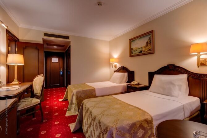 Последний раз ремонт в отеле проводился в 2013 году, поэтому помещения в отличном состоянии, элегантные интерьеры в традиционном восточном стиле радуют взгляд. Даже самые демократичные варианты уровня «Стандарт» подразумевают следующее: