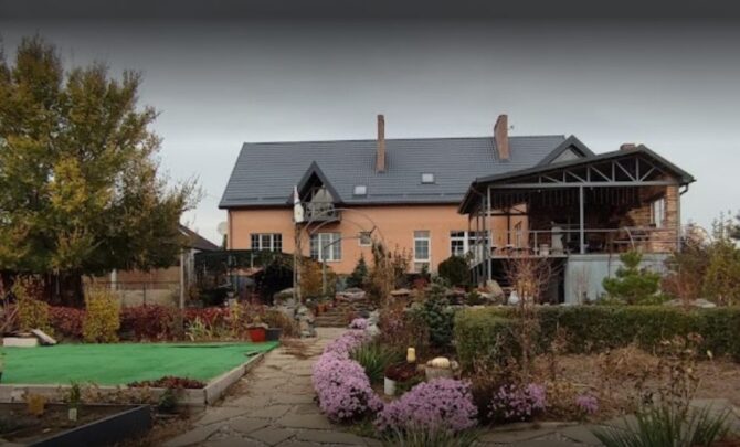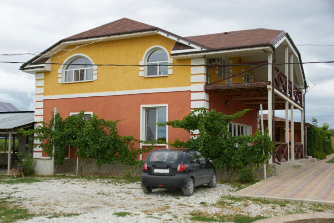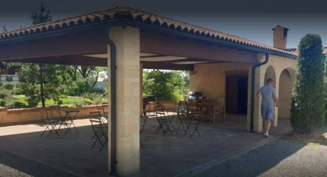 Территория очень красивая и ухоженная, везде растут молодые деревья и виноградники. Посередине установлен фонтан с лавочками. Усадьба может использоваться для больших застолий и корпоративов. Для этих целей имеется большая крытая веранда, в какой-то степени она напоминает банкетный зал. Гости, которые остановились здесь на ночь, могут воспользоваться общей кухней или зоной барбекю.