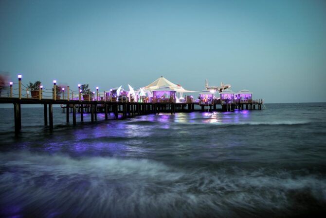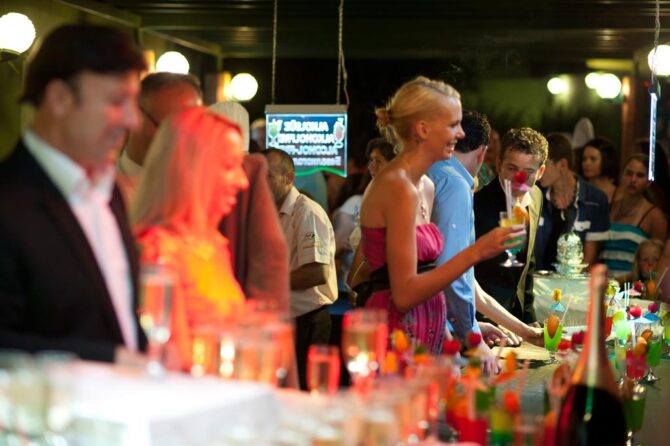 Вечером вас ждет развлекательная программа с приглашенными артистами, которые проводят интересные шоу-программы и удивительные концерты. Затем начинается дискотека в ночном клубе с профессиональными диджеями и зажигательными треками. За напитки здесь нужно доплачивать