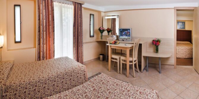 Ирина, 47 лет: «Ездила отдыхать с дочкой, зятем и внучкой – отлично провела время. Дети были в основном возле бассейна, а я на пляже, встречались только во время приемов пищи и на вечерних мероприятиях. Малышка полюбила всех аниматоров, хвасталась медалями, заработанных в конкурсах. В номере тоже все было замечательно, шум амфитеатра вечером мне не мешал, да и уборку проводили вовремя. Рекомендую комплекс ленивым родителям с активными детьми».