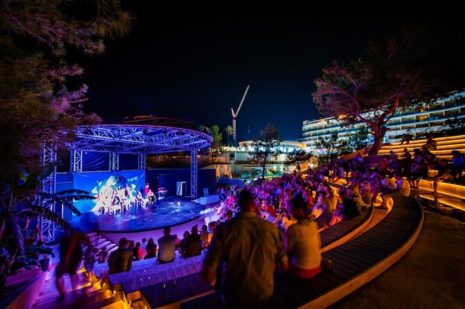 Вечером вас ждут увлекательные шоу с тематическим настроением. Амфитеатр вмещает одновременно до 1 тыс. человек. Молодежи понравятся проводимые дискотеки с современными популярными треками. Развлекают гостей МС, диджеи и аниматоры. По праздникам для вас поют звезды российской и местной эстрады.