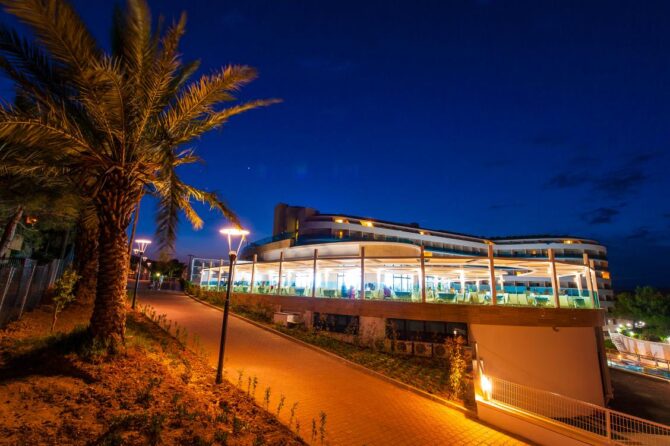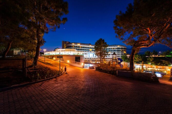 Отель расположен возле Средиземного моря в городе Аланья-Окурджаллар. Он отличается от остальных самым большим аквапарком в этом районе и природой, которая дарит незабываемую атмосферу спокойствия и радости.