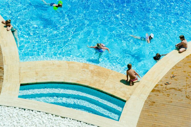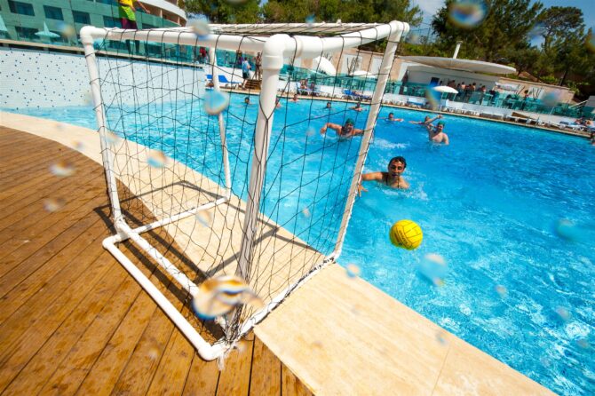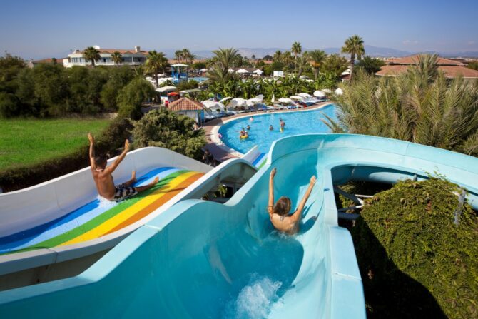 - Огромные бассейны с собственным аквапарком;