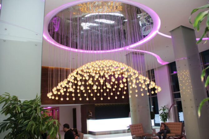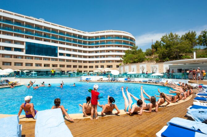 Анна, 33 года: «На трансфере нас доставили из аэропорта примерно за 2 часа. Заселение прошло быстро, без конфликтов, номер хороший, но можно было бы сделать шумоизоляцию получше. Были на том пляже, до которого возят, вода отличная, но нет лежаков, а тот, что в отеле (с лифта на платформу) нас не впечатлил, не рискнули купаться. Рядом с комплексом много магазинов и рынков, я часто там прогуливалась и торговалась. Анимация веселая, направлена на развлечение молодежи: есть много спортивных площадок, дискотека, аквапарк».