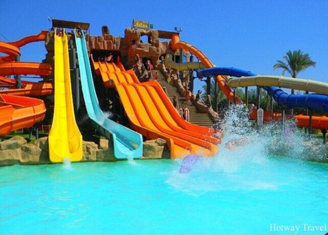 Отель отличается от остальных в этом районе наличием собственного аквапарка на 24 горки: