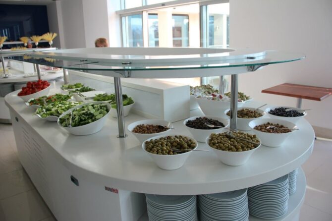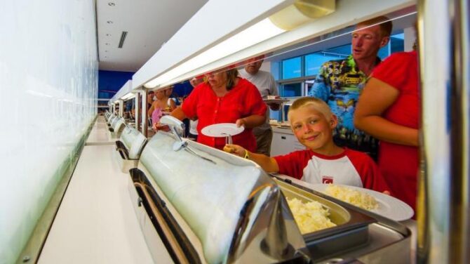 В ресторанах официанты своевременно убирают со столов, предлагают для детей стульчики для кормления. Раздача пополняется вовремя, поэтому если вы придете к окончанию приема пищи, вас все равно будет ожидать разнообразие блюд.