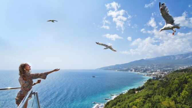 - Ласточкино гнездо – стилизованный рыцарский замок, которые стоит на краю отвесной скалы. Это символ Крыма и его визитная карточка, так как было построено в начале 20 века. С 2015 года сооружение стало федеральным памятником.