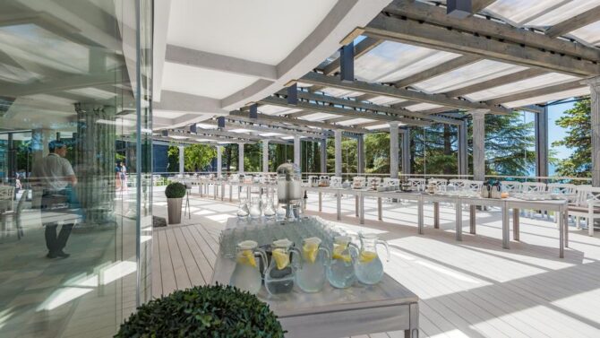 - «Хлеб. Сыр. Вино» – заведение, где всегда можно найти свежую выпечку, известные мировые сорта сыра и алкоголь местного и иностранного производства. Находится на прогулочной аллее отеля.
