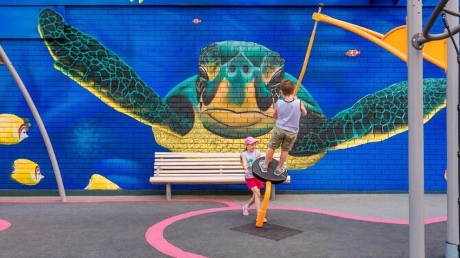 - Спортивные зоны для тенниса, мини-футбола, пляжного волейбола, танцев, шаффл-борда.
