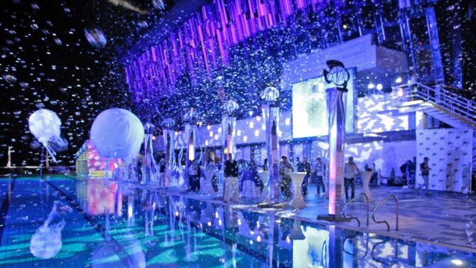 Кроме этого здесь работает 10 конференц-залов (Хрустальный, Звездный, Висла, Альфа, Бета, Гамма, Олимп, Омега, Фиолент, Ялтинский берег). Поэтому вы легко можете организовать любое мероприятие. По желанию персонал расставит мебель по вашему плану, проведет уборку, подготовит фуршет и необходимое оборудование. Стоимость уточняйте на ресепшене.