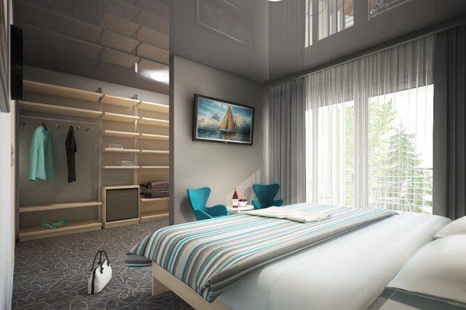 В отеле гостей ждет семь видов подготовленных апартаментов. В каждом помещении есть балкон с видом на море, Ялту, гору Ай-Петри и Массандровский парк. Кроме этого воспользуйтесь любыми удобствами: