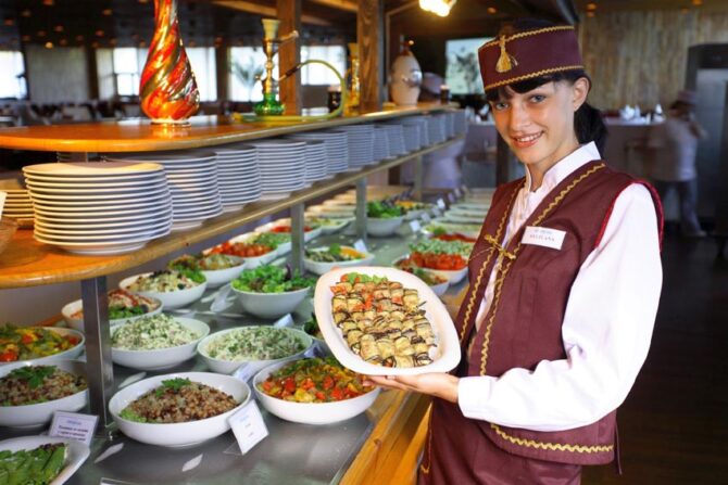 - «Мраморный» ждет посетителей на обед «все включено» с 13:00 до 15:00 и ужин – с 18:00 до 21:00.