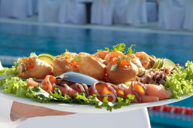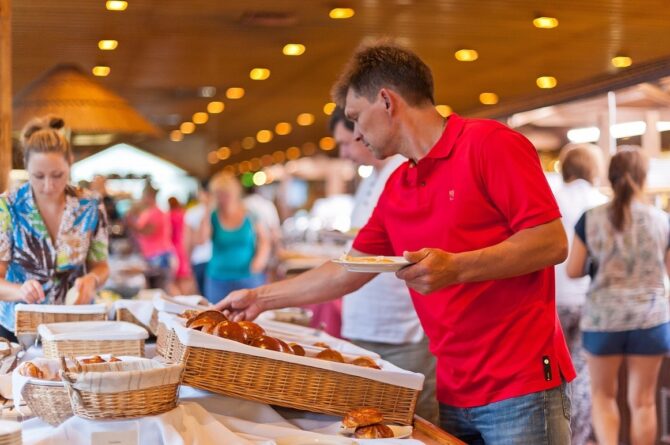На территории отеля функционирует 18 ресторанов и кафе, где подают блюда кухонь разных стран мира.