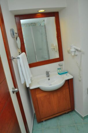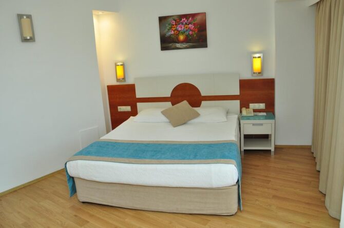 В стандартных номерах вас порадует наличие центрального кондиционера, Wi-fi, фен и ванна. За телефонную связь, сейф и Room service придется доплатить. Ежедневно проводится уборка и три раза в неделю смена постельного белья и полотенец. Здесь стоит 1 двуспальная и 1 односпальная кровати.