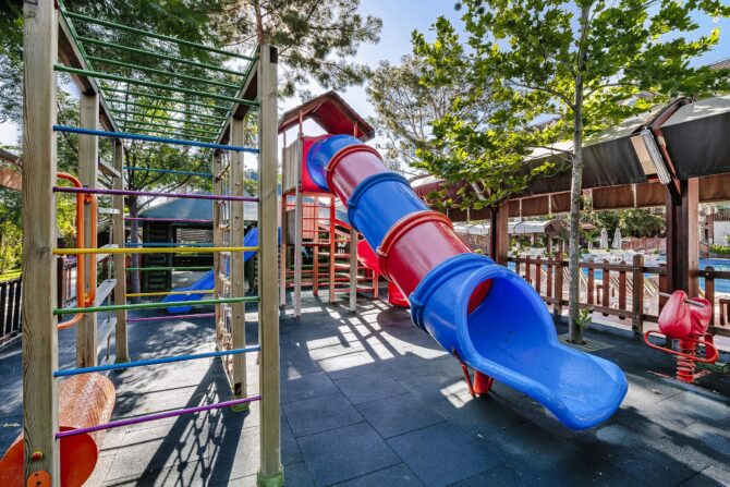 Детям также не будет скучно, потому что их займут аниматоры с большим опытом работы с детьми. Вечером подростки смогут посетить специальную мини-дискотеку с мороженым и безалкогольными напитками. За ребятами 4 – 12 лет предназначен мини-клуб. Также в отеле есть открытый и крытый детский бассейн, а в ресторане предоставляются специальные стулья. В игровой комнате никто не заскучает. По необходимости можно воспользоваться услугами няни, но за них нужно доплатить.
